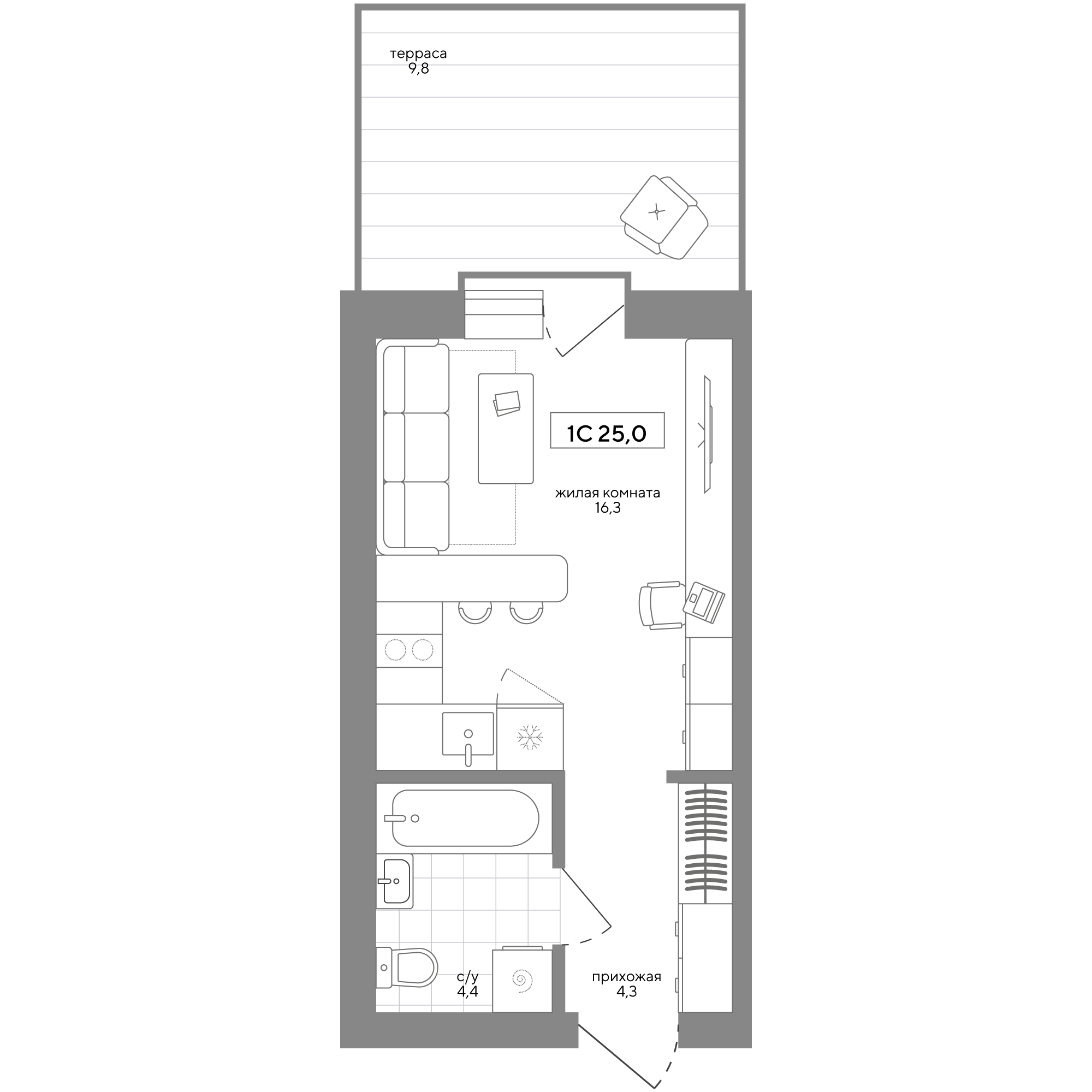 Эксклюзивные планировки с просторными террасами 14,4 м², которые выходят во внутренний зеленый двор. Дышите свежим воздухом даже когда готовите обед на плите, читаете книгу или гуляете с ребенком — места хватит для обустройства личной игровой площадки для малыша.