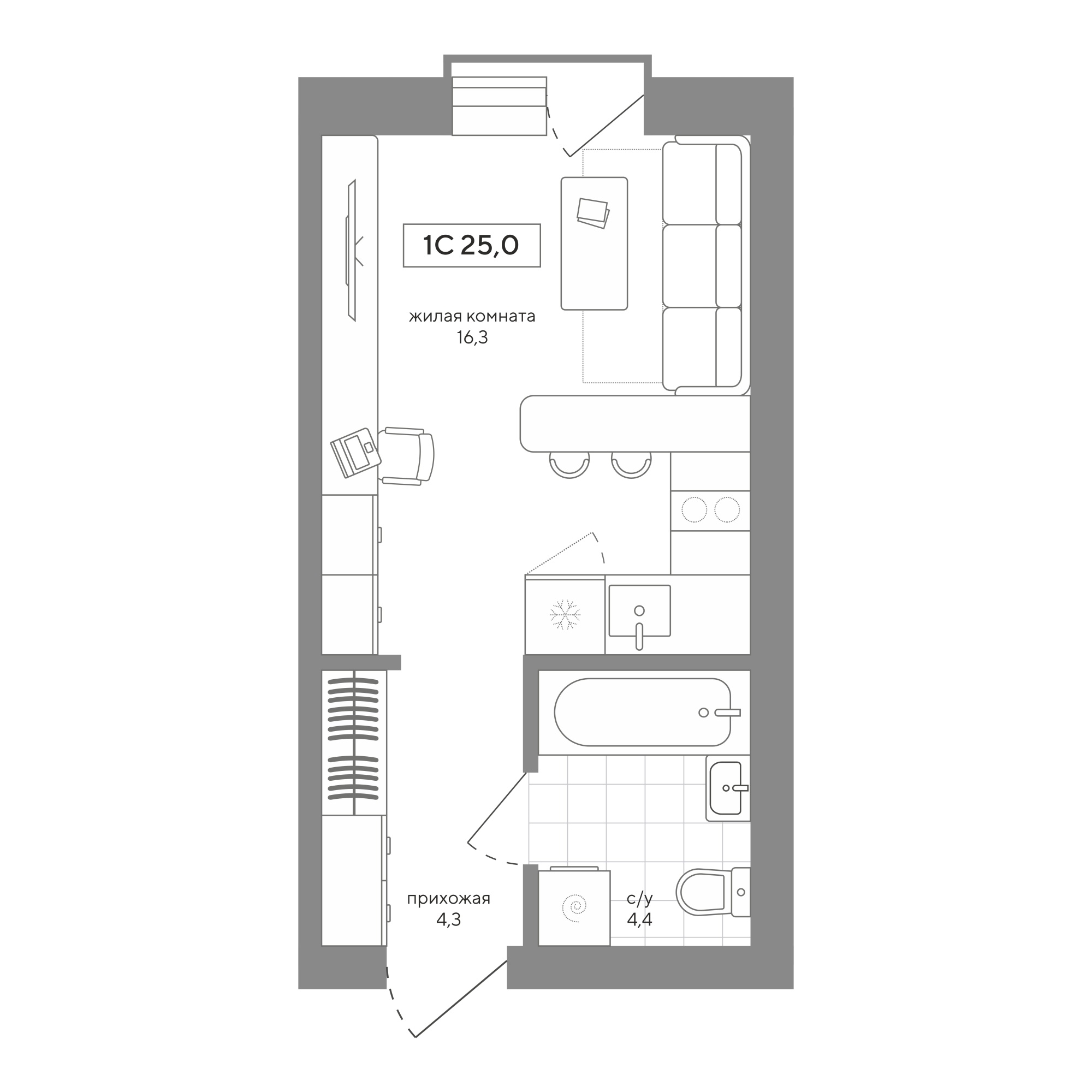 В каждой квартире продуманы ниши для хранения вещей. В однешке — отдельная гардеробная комната на 5 кв.м. В трешке — место для встроенного шкафа в прихожей и личная гардеробная прямо в спальне.
